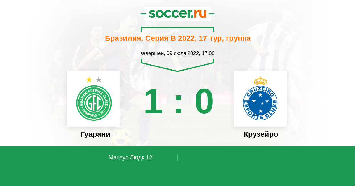 12' (1:0) Матеус Людк (2) (Джованни Аугусто (10))