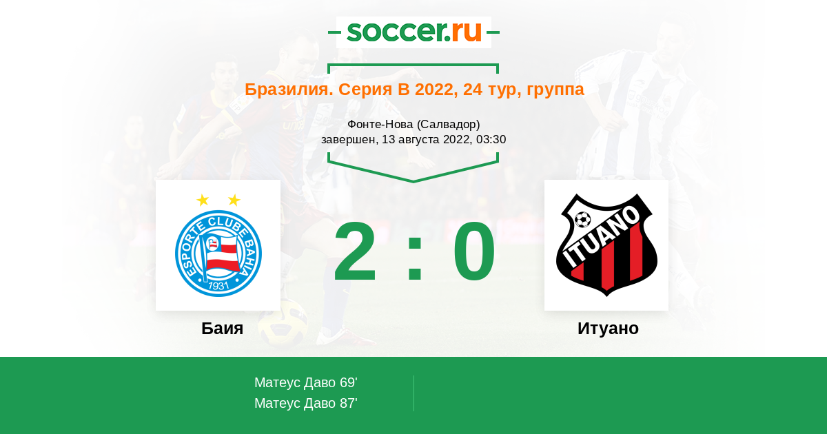 69' (1:0) Матеус Даво (88) (Гуларт Рикардо (16))