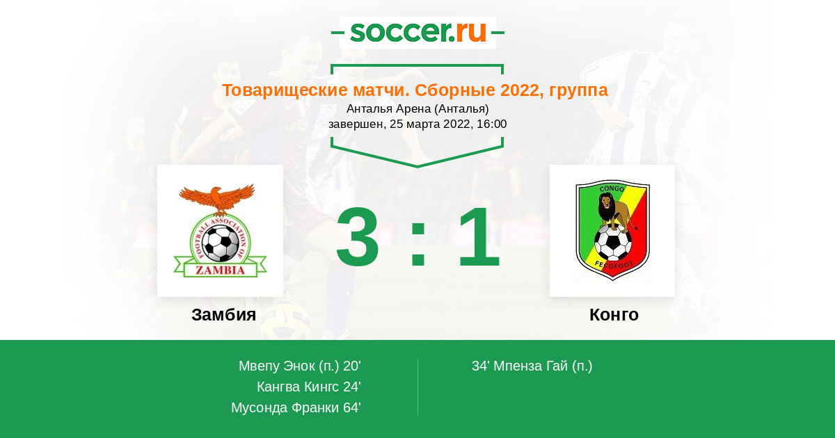 64' (3:1) Мусонда Франки (14) (Кабве Родерик (13))