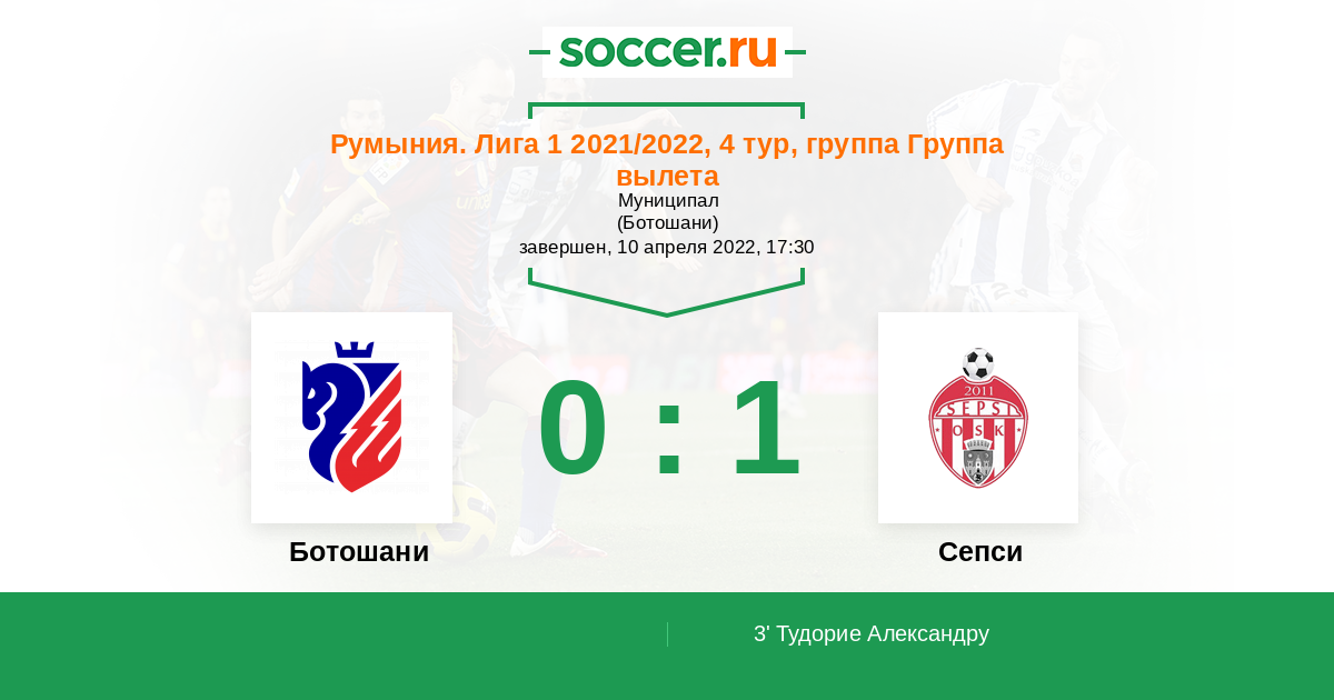 3' (0:1) Тудорие Александру (9) (Стефанеску Мариус (11))