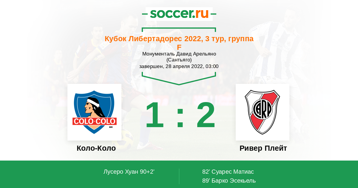 Гол90+2' (1:2) Лусеро Хуан (9) (Солари Пабло (36))