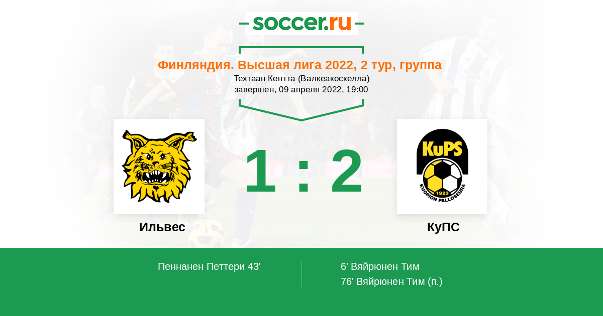 76' (1:2) Вяйрюнен Тим (9)