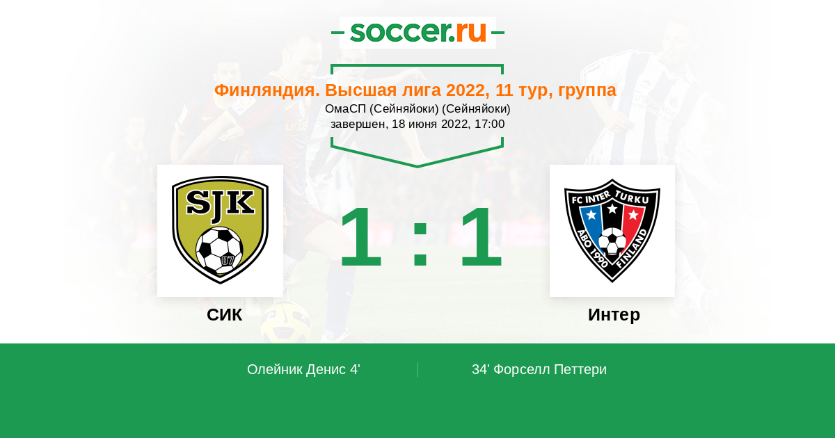 34' (1:1) Форселл Петтери (10) (Тамминен Матиас (21))