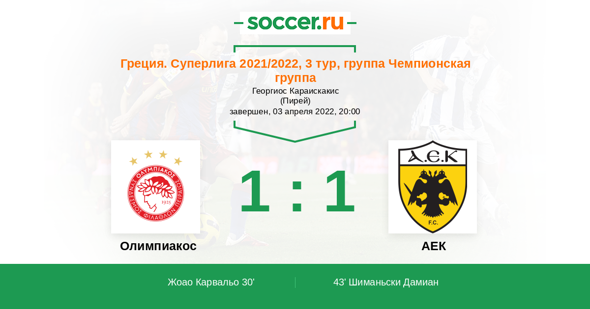 30' (1:0) Жоао Карвальо (20) (Масурас Гиоргос (19))