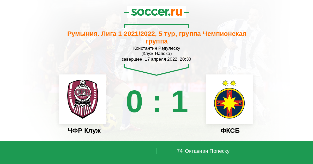 74' (0:1) Октавиан Попеску (9) (Флорин Лучан Танасе (10))