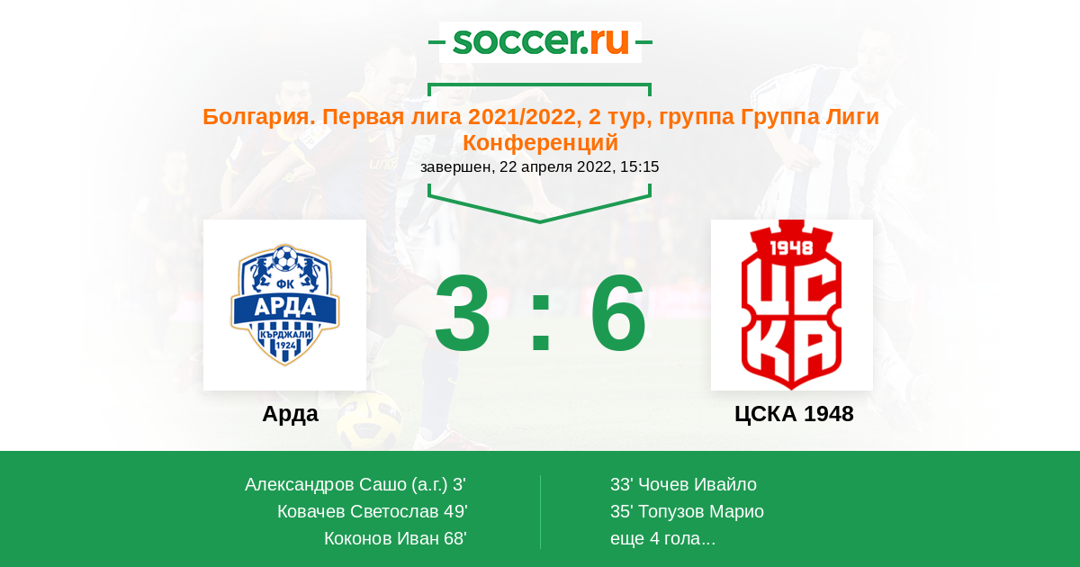 3' (1:0) Автогол Александров Сашо (15)
