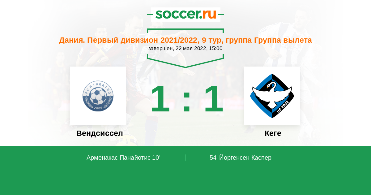 54' (1:1) Йоргенсен Каспер (24) (Тренсков Якоб (18))