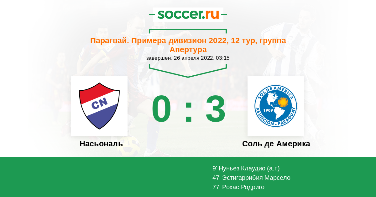 9' (0:1) Автогол Нуньез Клаудио (14)