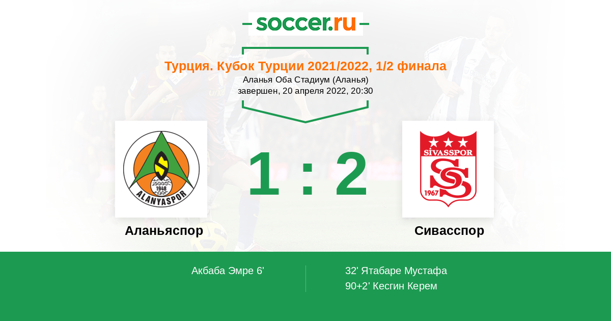 6' (1:0) Акбаба Эмре (23) (Гюнес Умут (6))