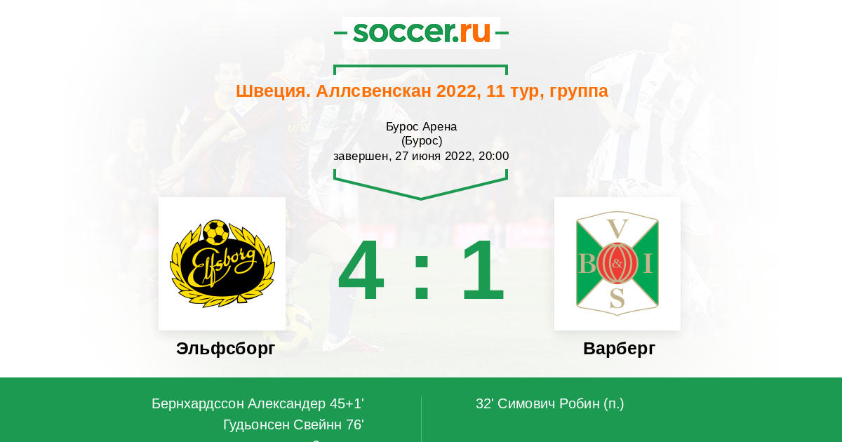 90+6' (4:1) Йохан Ларссон (24) (Гудьонсен Свейнн (11))