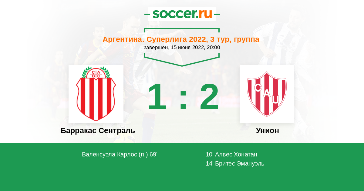 10' (0:1) Алвес Хонатан (44) (Ролдан Энцо (8))