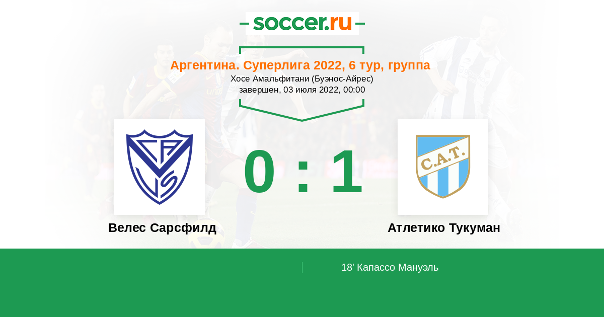 18' (0:1) Капассо Мануэль (26) (Каррера Рамиро Анхель (23))