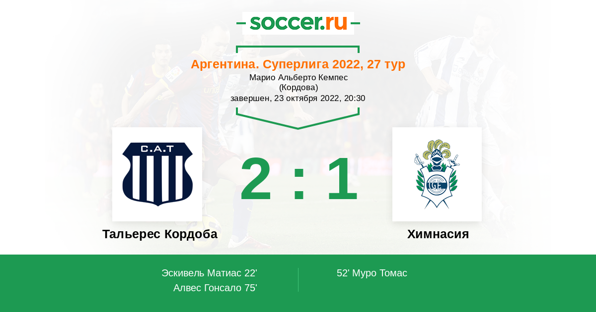 22' (1:0) Эскивель Матиас (32) (Годой Матиас (38))