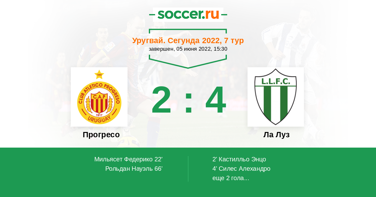 44' (1:4) Автогол Лабрага Габриэль