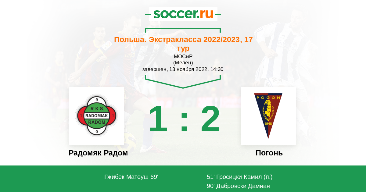Гол90' (1:2) Дабровски Дамиан (8) (Ведрыховски Марсель (15))