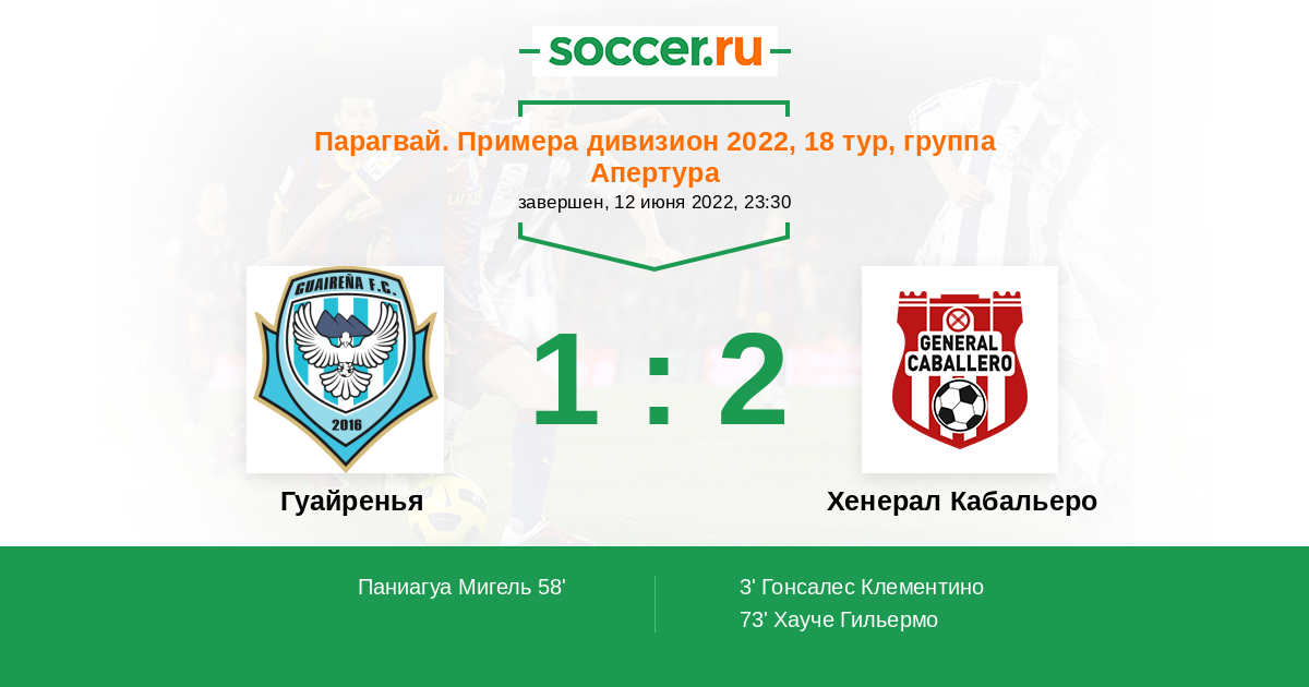 3' (0:1) Гонсалес Клементино (9) (Лескано Томас (24))