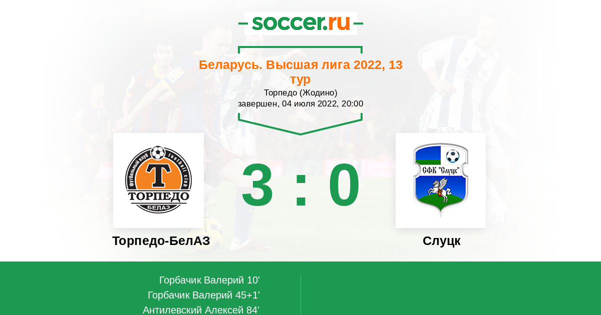 В этом матче встречаются команды которые в последнем туре не забили. Два тура подряд Слуцк сейчас не забивает и если не забили Батэ то это понятно, но команда не забила Витебску, которым должны были забивать. Торпедо так же в последнем туре не смогла забить, но так же был сильный соперник Гомель, в остальных случаях команда прекрасно забивала голы, поэтому у этой команды больше шансов как победить так и забить гол, но Слуцк три игры уже не проигрывает Торпедо, поэтому обе команды скорее всего должны сегодня отличиться. Удачи