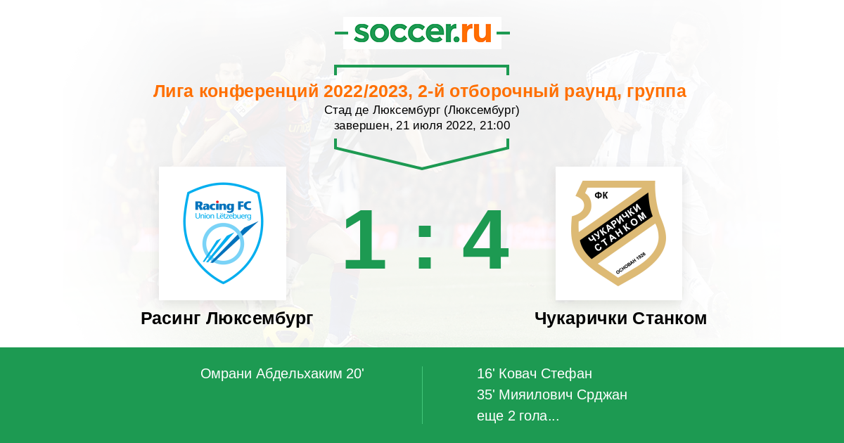 Расинг Унион против Чукарички. Уровень футбола в Люксембурге возрос, однако это не означает что все команды заиграли качественно и теперь представляют силу даже для средненьких команд из Белграда.) Матч вполне себе может выдастся результативным. Отдам победу вторым так как команда из Белграда должна быть все же выше уровнем.