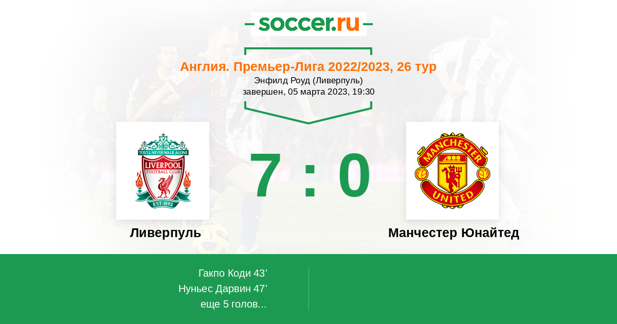 47' (2:0) Нуньес Дарвин (27) (Эллиотт Харви (19))