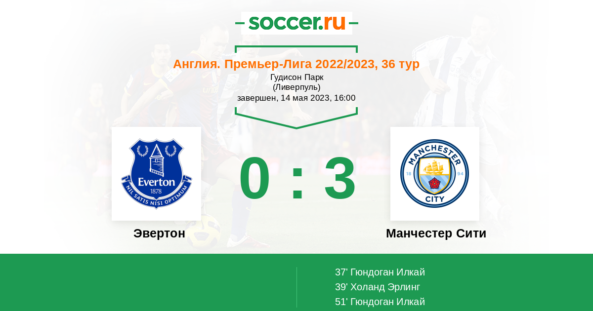 39' (0:2) Холанд Эрлинг (9) (Гюндоган Илкай (8))