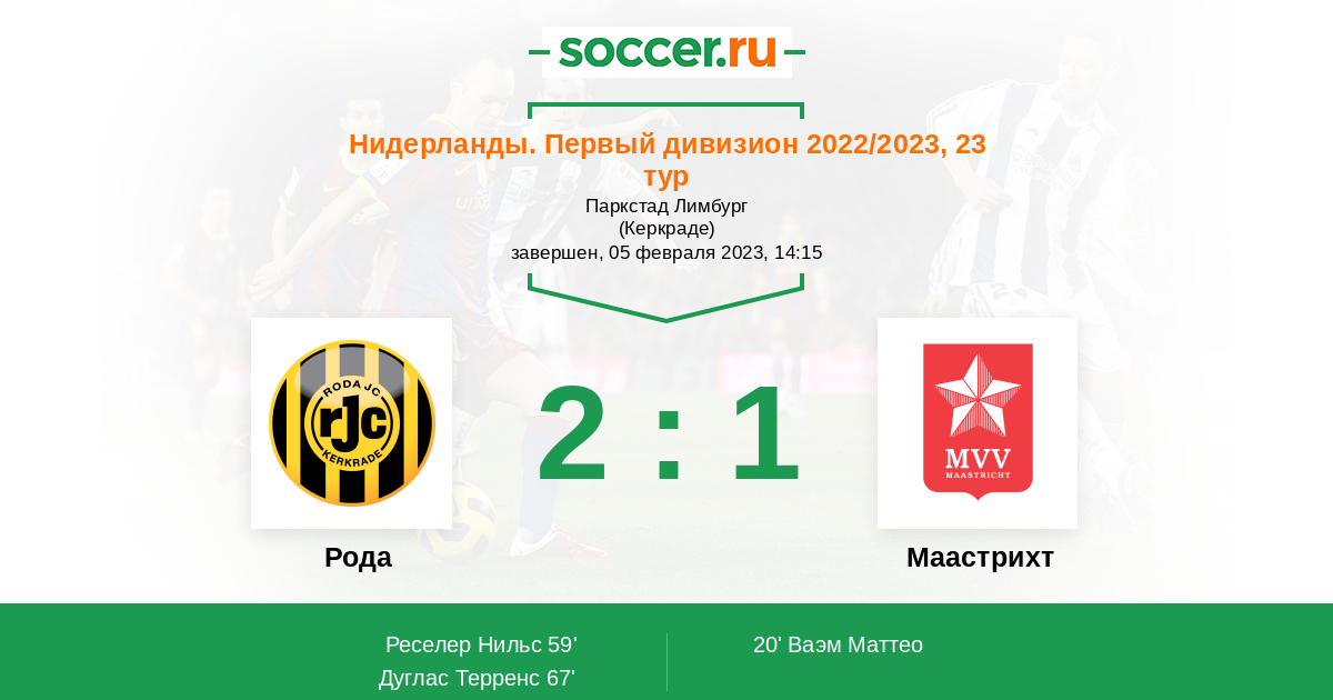 20' (0:1) Ваэм Маттео (4) (Стукерс Ярне (16))