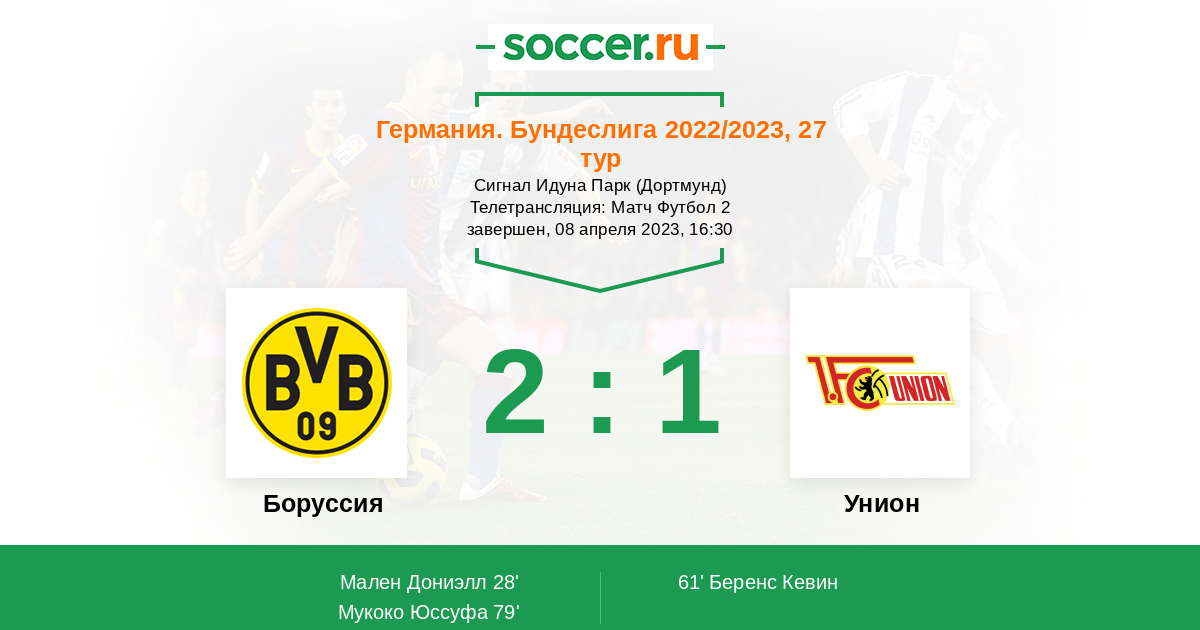 В этом матче между командами "Боруссия" Дортмунд и "Унион" Берлин ожидается интересная и результативная игра. Обе команды преследуют лидера чемпионата "Баварию" которая бороться на два турнира. И возможно что она потеряет очки на данной дистанции. Поэтому прогноз обе команды забьют и тотал больше 1.5 в первом тайме. Удачи