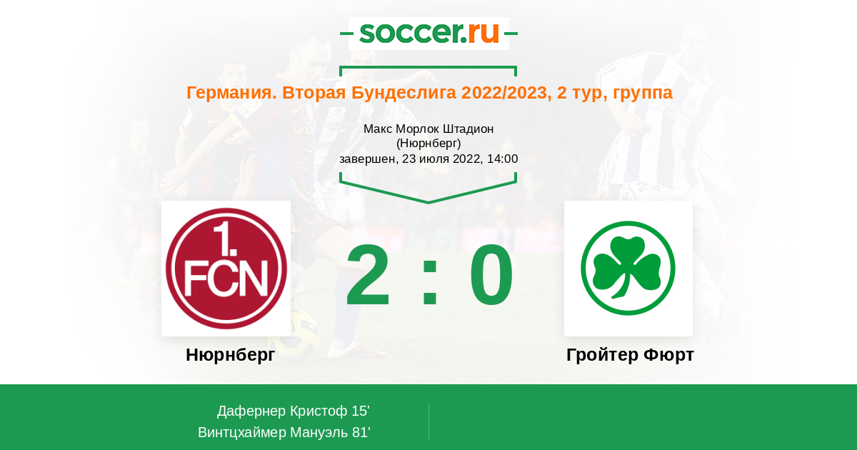 В Нюрнберг едет Гройьер Фюрт. Не возьмусь прогнозировать исход - шансы команд, на мой взгляд, примерно равны. Предположу, что матч будет результативный, так как Нюрнберг ищет счастья в атаке, да и ГФ, думаю не станет закрываться.