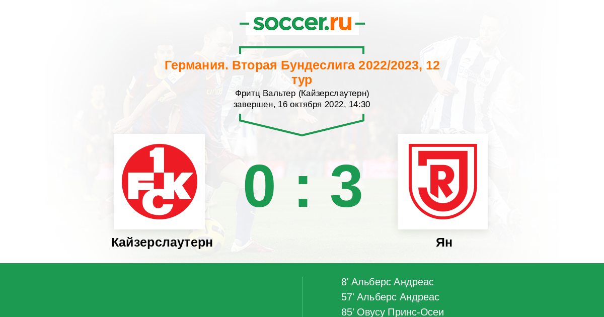 8' (0:1) Альберс Андреас (19) (Гюнтер Лассе (27))