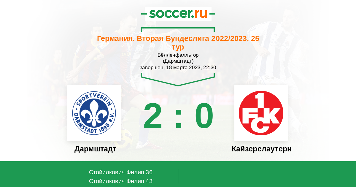 36' (1:0) Стойилкович Филип (40) (Холланд Фабиан (32))