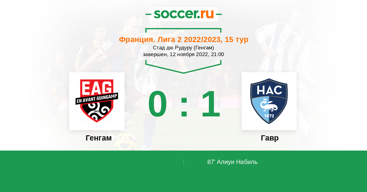87' (0:1) Алиуи Набиль (10) (Санганте Аруна (93))