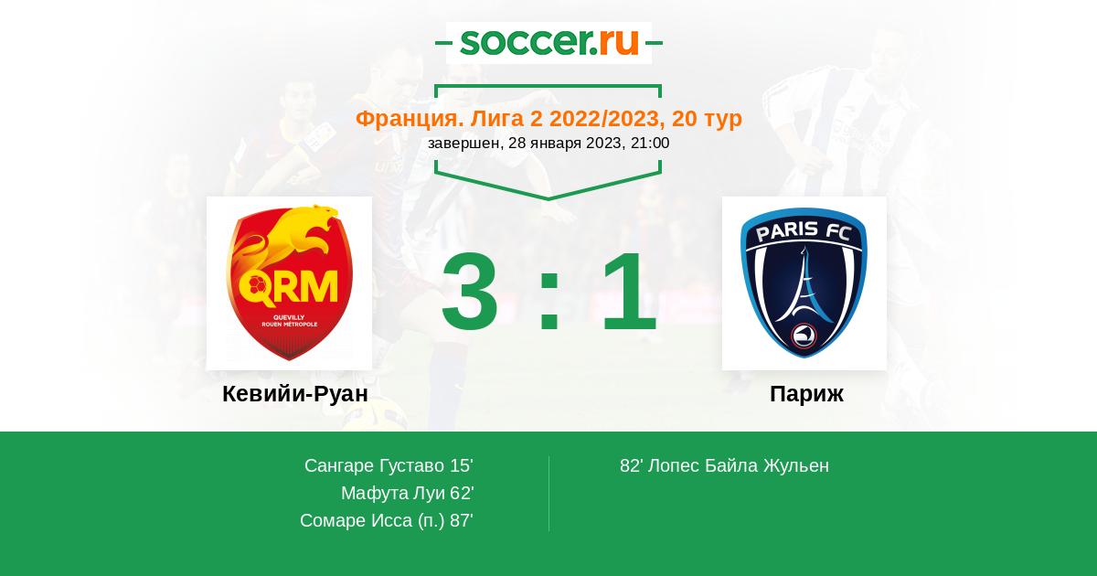 15' (1:0) Сангаре Густаво (17) (Сомаре Исса (45))