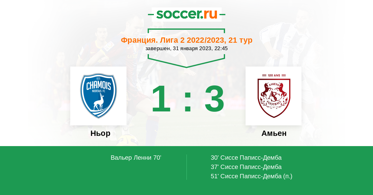 30' (0:1) Сиссе Паписс-Демба (18) (Фофана Мамаду (6))