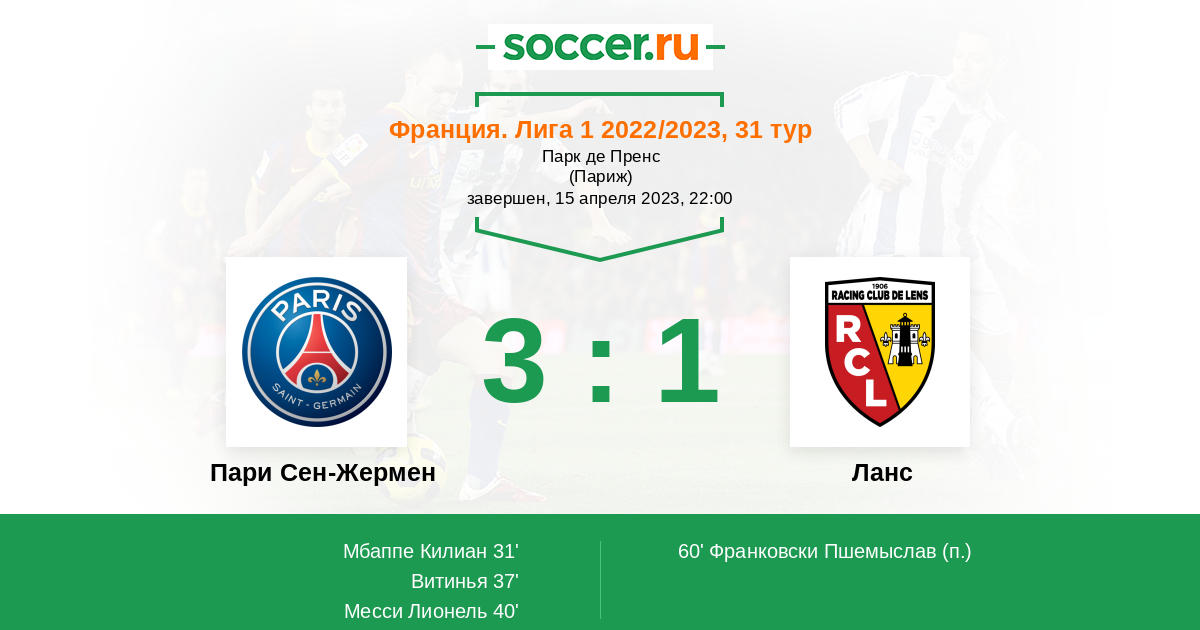 40' (3:0) Месси Лионель (30) (Мбаппе Килиан (7))
