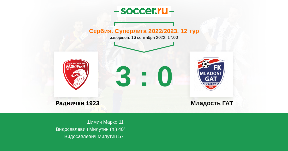 57' (3:0) Видосавлевич Милутин (55)