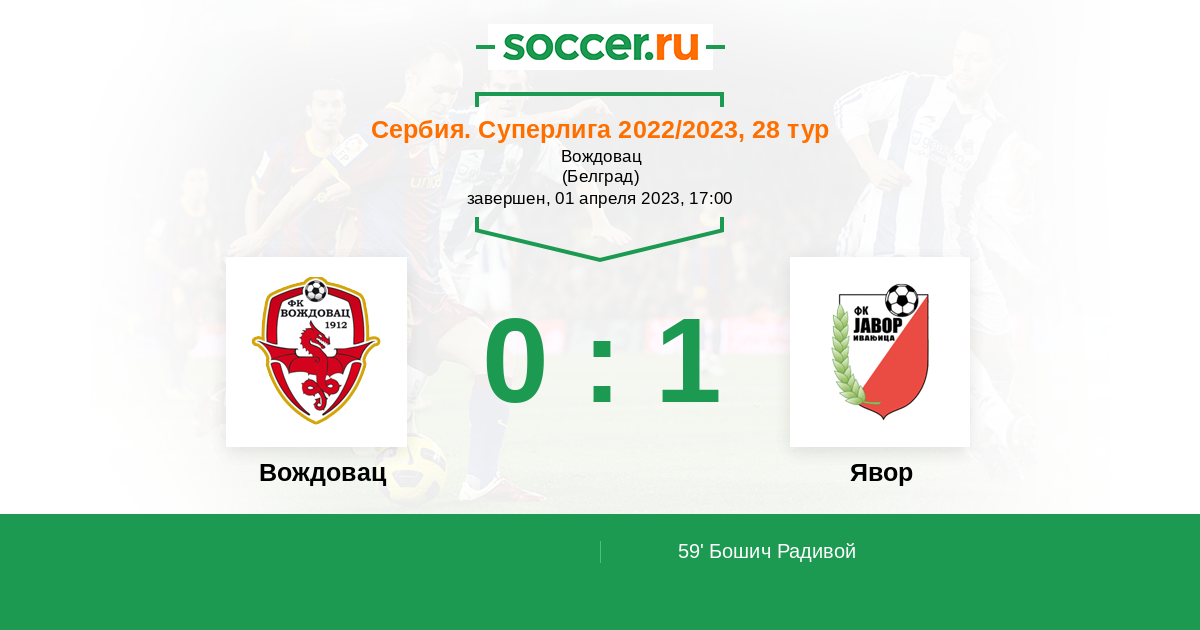 59' (0:1) Бошич Радивой (10)