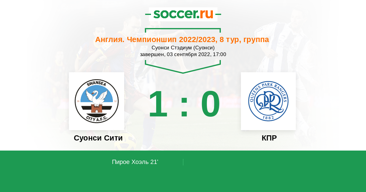 21' (1:0) Пирое Хоэль (17) (Купер Оливер (31))