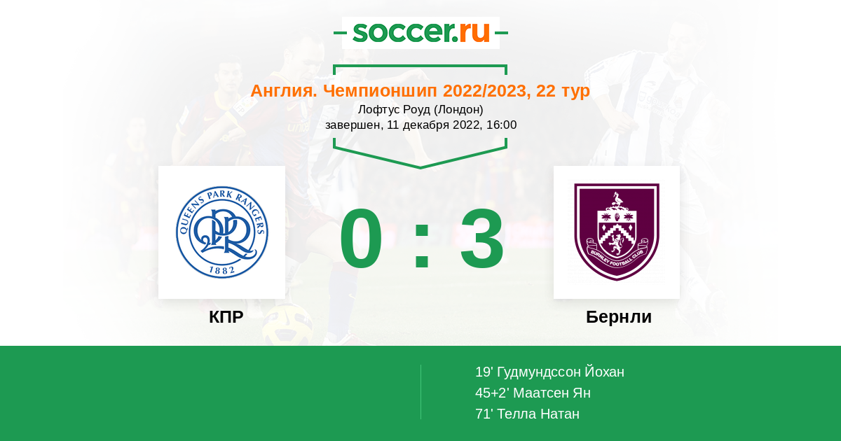 Игра двух представителей первой шестёрки чемпионата, способная порадовать интригой, но не обещающая много голов. «КПР» с новым тренером постарается прервать серию поражений, однако на состояние команды ещё нужно посмотреть. Забивают хозяева сейчас мало, но с «Бёрнли» дома в последние годы выступают неплохо, показывая надёжную игру в обороне. Лидер, конечно, обладая лучшей атакой лиги, попытается сыграть в привычном ключе и забить пару мячей, но на большее после длительной паузы не рассчитывает.