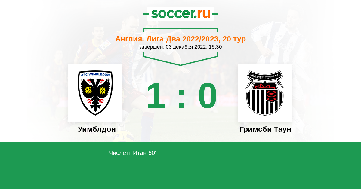 60' (1:0) Числетт Итан (11) (Пелл Гарри (8))