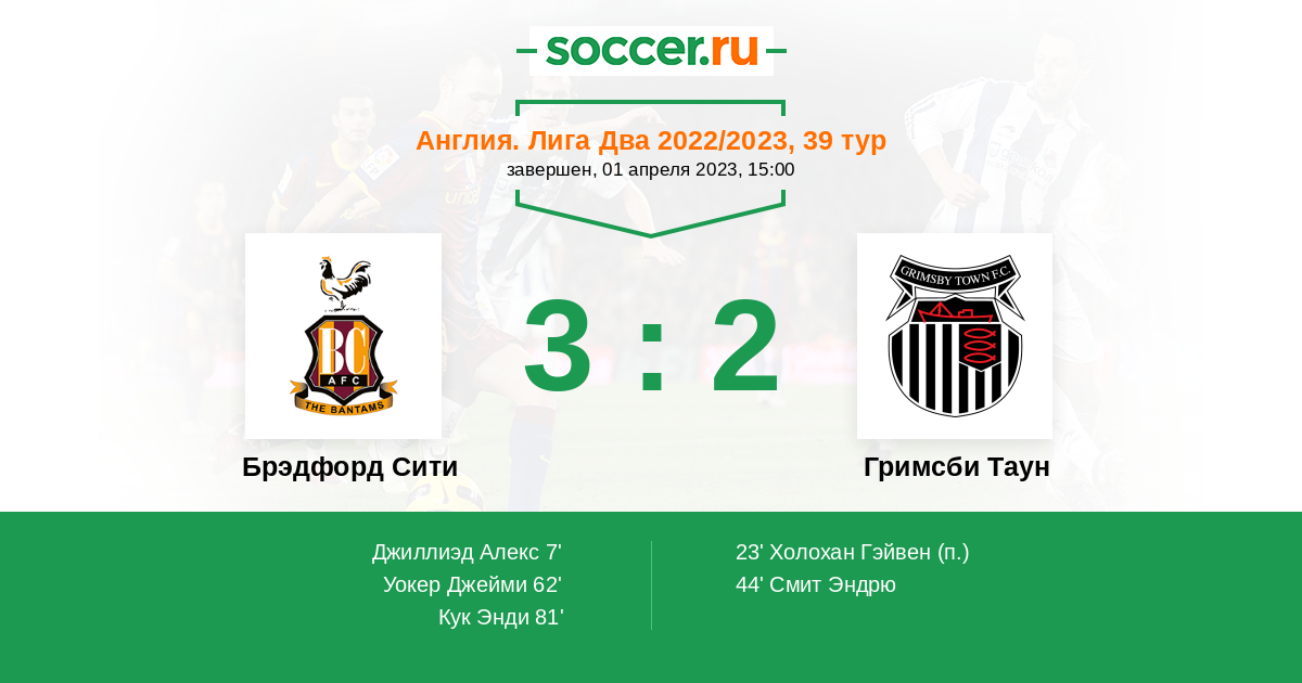 81' (3:2) Кук Энди (9) (Дербишир Мэтт (23))