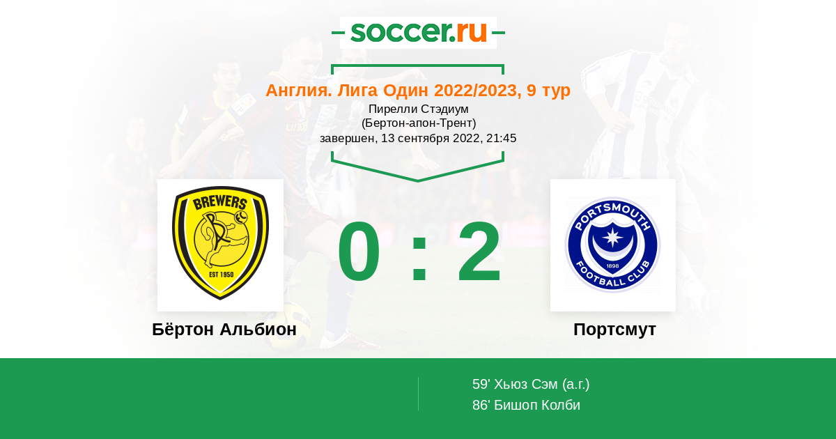 59’ 0:1(А) Хьюз Сэм
