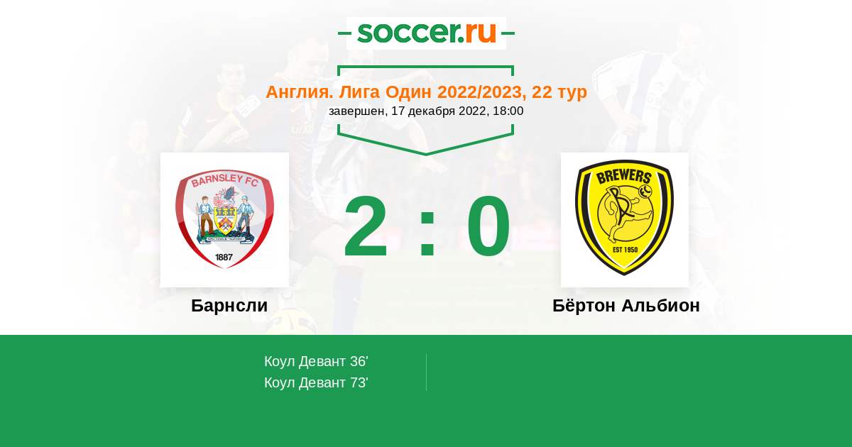 36' (1:0) Коул Девант (44) (Волф Мэттью (33))