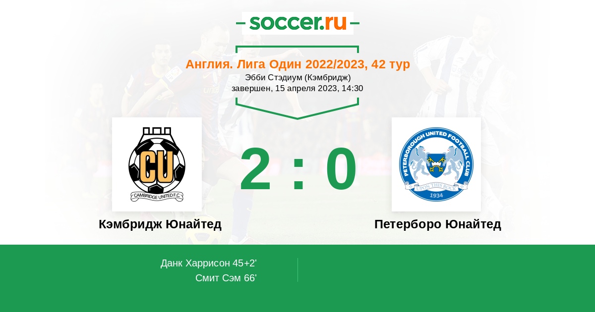 45+2' (1:0) Данк Харрисон (11) (МакГрандлес Конор (24))