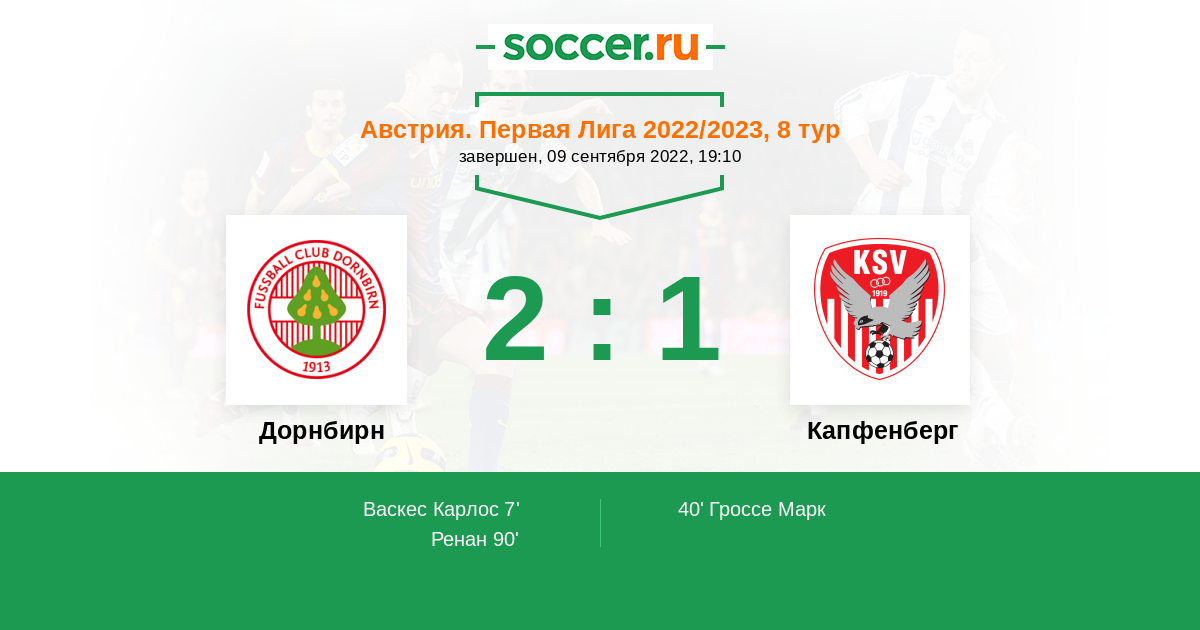 7' (1:0) Васкес Карлос (3) (Нуссмаумер Ларс (21))