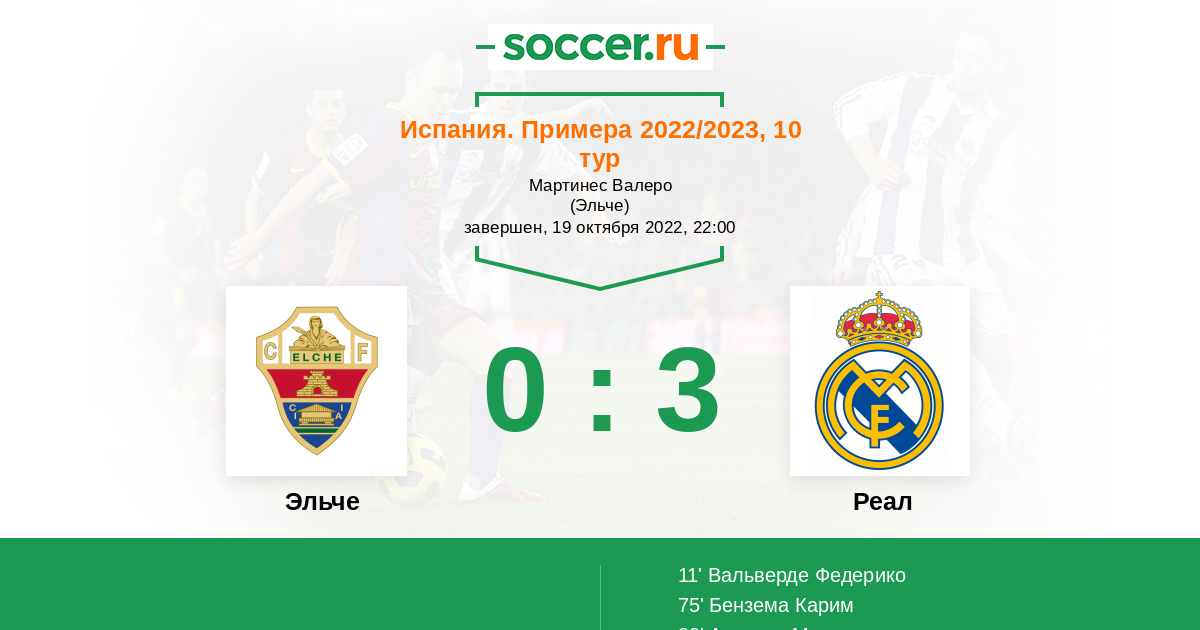В предстоящем матче 10 - го тура испанской Ла Лиги между командами Эльче и Реал Мадрид, более чем явным фаворитом на победу является команда гостей Реал Мадрид, так как он является лучшим клубом в истории футбола.
