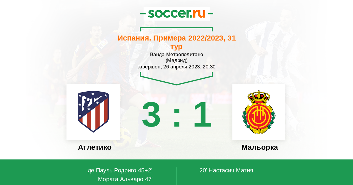 47' (2:1) Мората Альваро (19) (Молина Науэль (16))