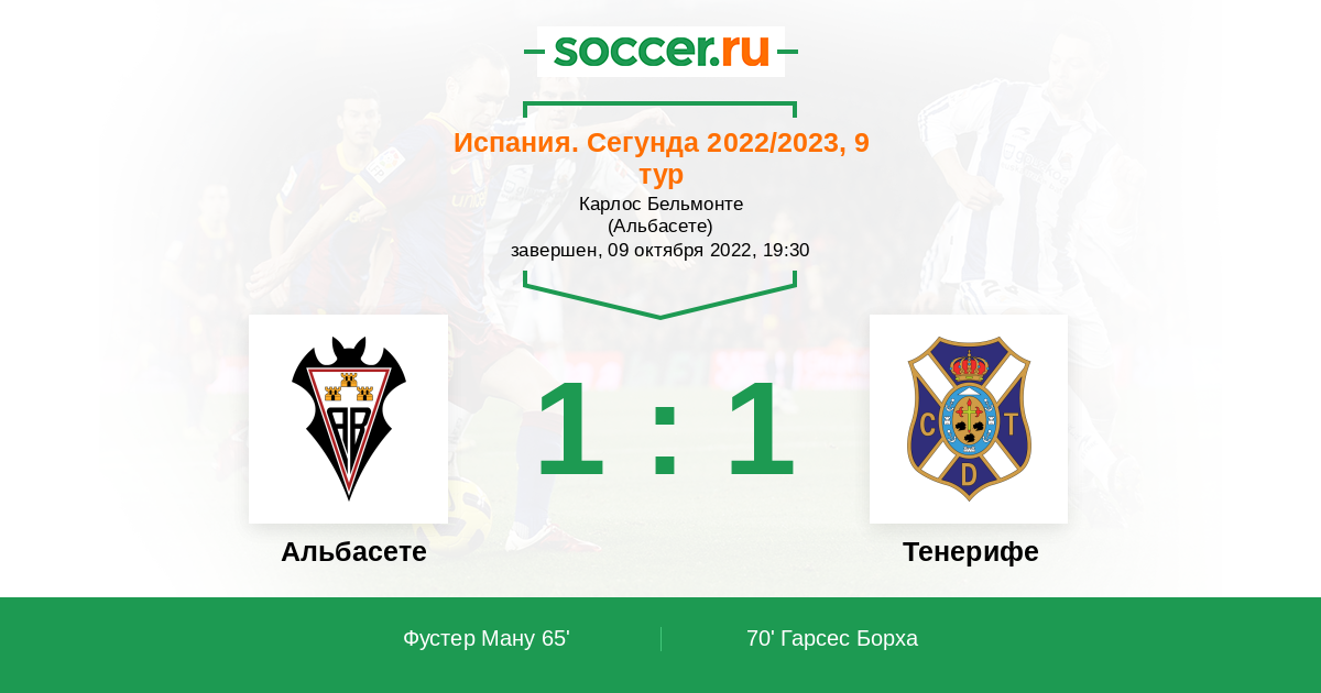 70' (1:1) Гарсес Борха (9) (Лопес Андони (12))