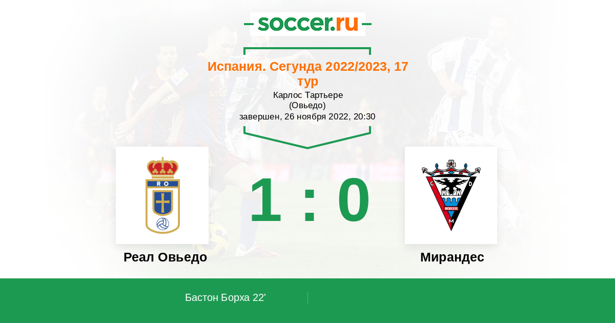 22' (1:0) Бастон Борха (9) (Костас Давид (4))