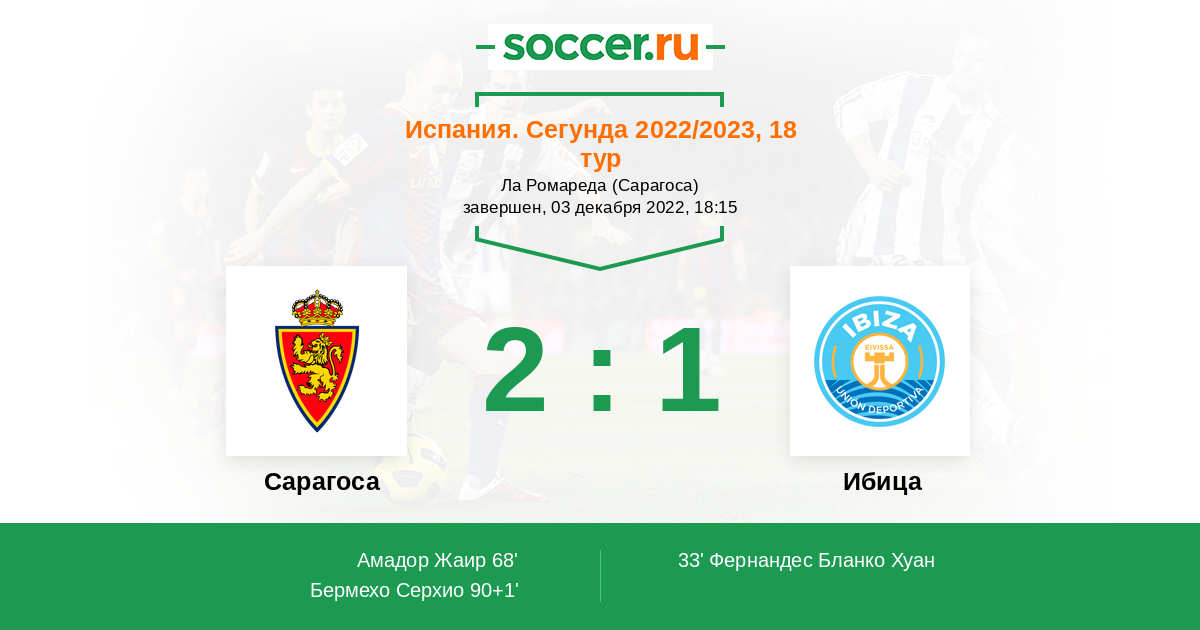 Исходя из положения команд в турнирной таблице, Ибица явный аутсайдер. Хотя и Сарагоса не очень надежно закрепилась в середине таблицы. находясь ближе к нижней ее части. Так что выделить здесь фаворита очень тяжело.