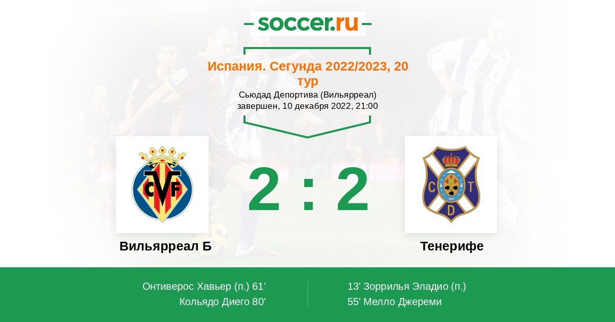 Судя по расположению команд в турнирной таблице победа Вильярреала Б над Тенерифе на своем поле выглядит вполне вероятной и коэффициент на эту победу просто шикарный. Дома Вильярреал Б вообще не проигрывает, а Тенерифе неудачно играет на выезде.