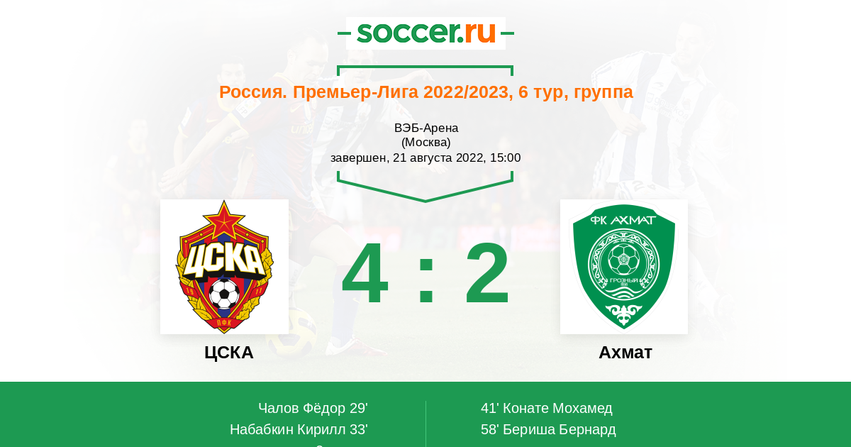 Хорошо играли, но забив 3 не по детски расслабились, за что и получили. Ваня явно недолечился и был бесолезен на поле. Ахмат хорошо поборолся. Молодцы.